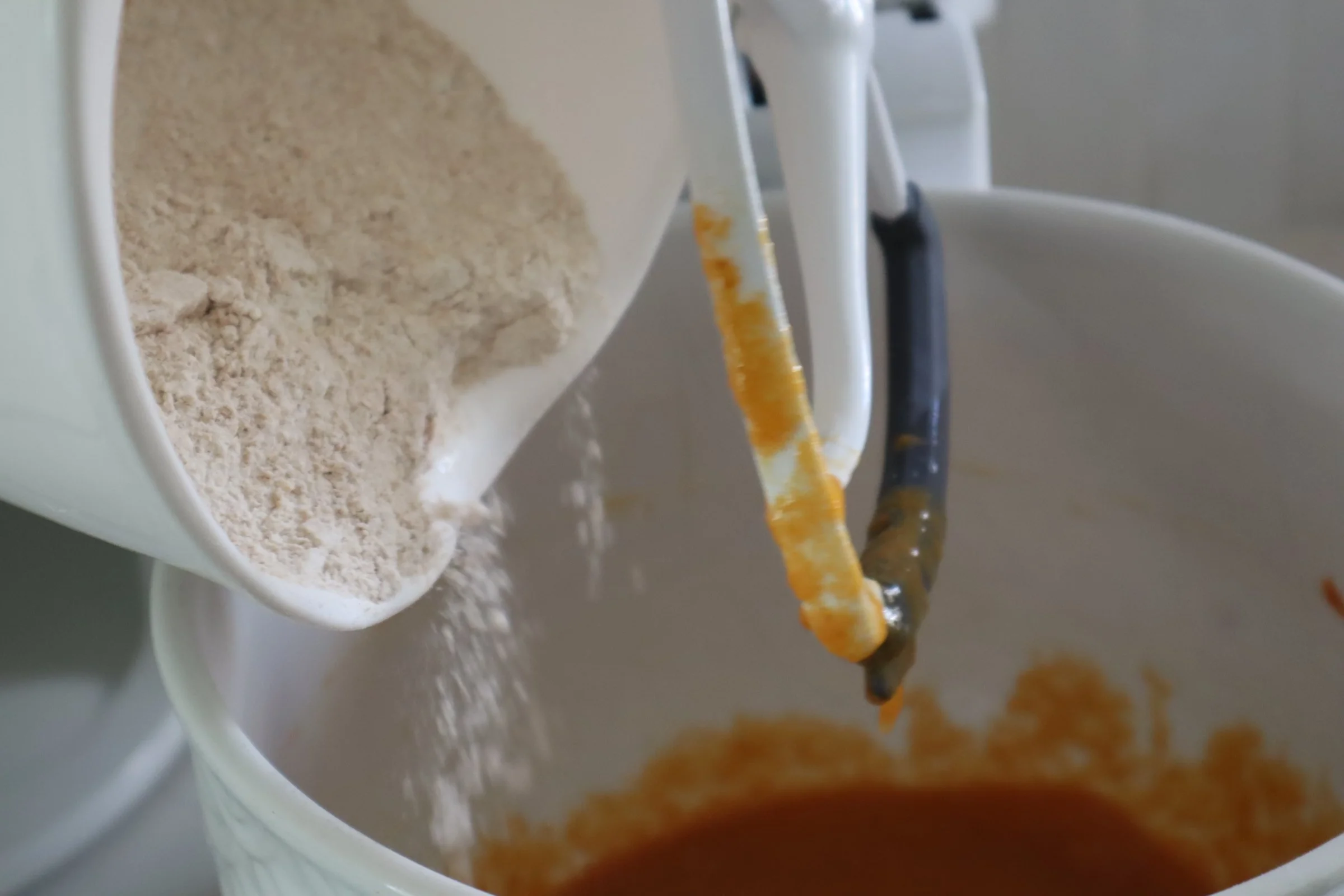 There’s something about baking with pumpkin that just makes the house feel like fall. The soft hum of the grain mill in the background, the scent of cinnamon drifting through the kitchen, and that first spoonful of golden pumpkin puree — it all feels like a gentle invitation to slow down.