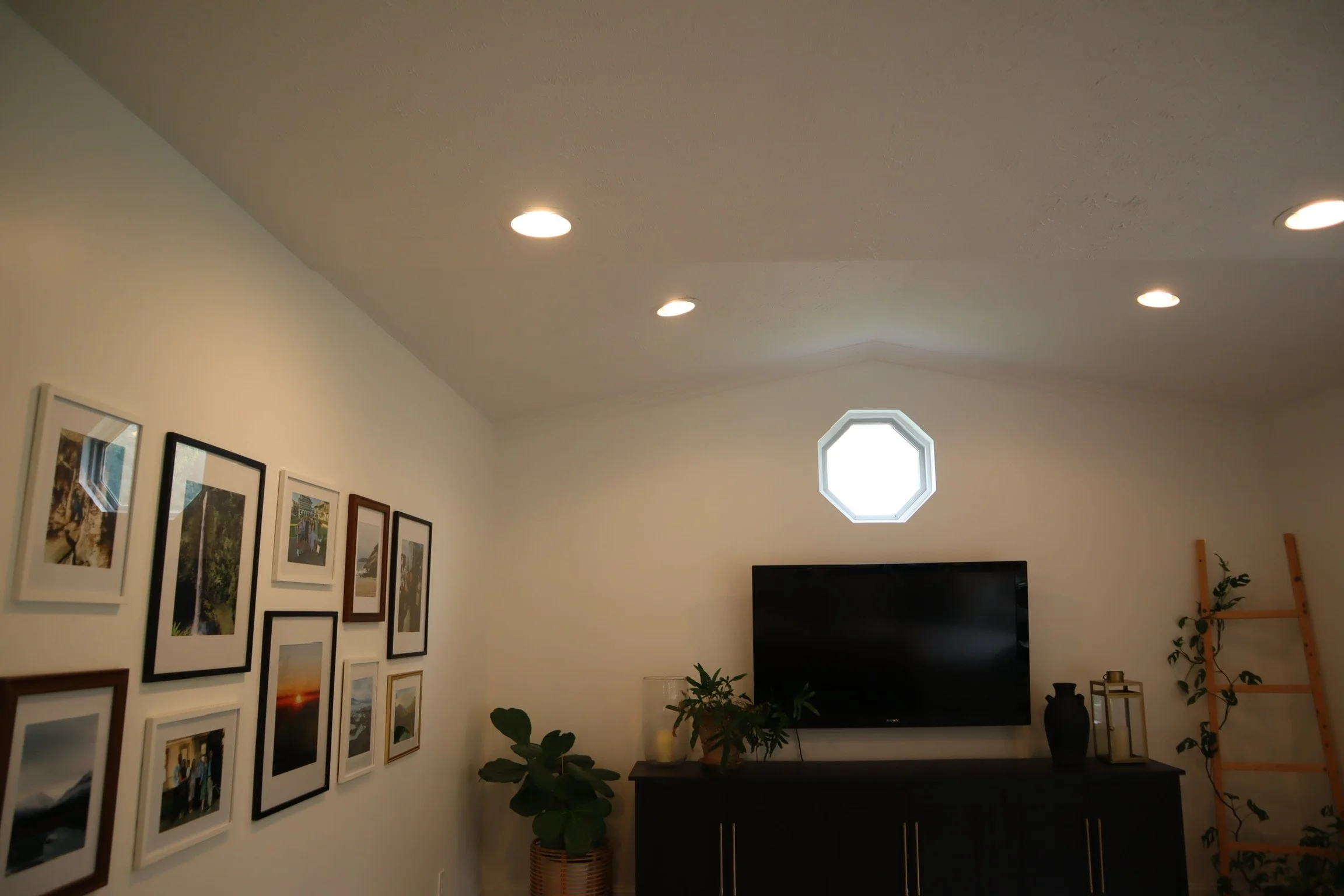 In our home, we use dimmable LED lights for the main ceiling lighting. It’s so nice to be able to turn the brightness down after dinner or when we’re watching a movie. It instantly makes the room feel more peaceful.